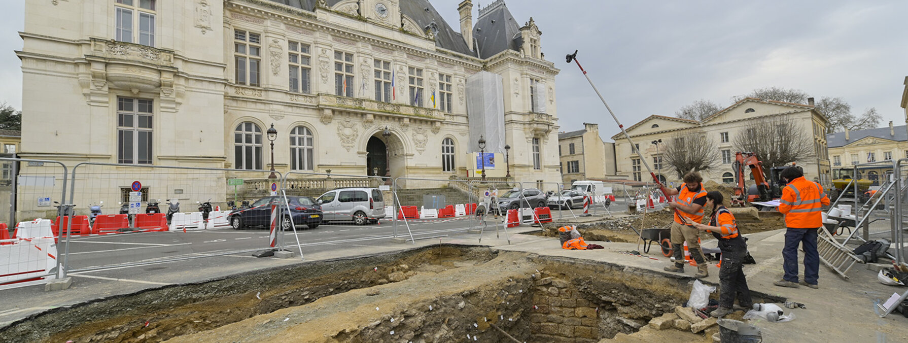 Le chantier de requalification du secteur de l’hôtel de ville démarre par une période de fouilles. Les archéologues ont investi la place Martin-Bastard début février. Ils y resteront jusqu’au début du mois d’août.