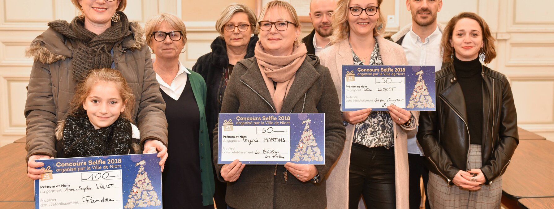 Les gagnants du concours de selfies organisé en décembre par la Ville de Niort, devant la plus belle vitrine décorée, ont reçu leur prix le 23 janvier.